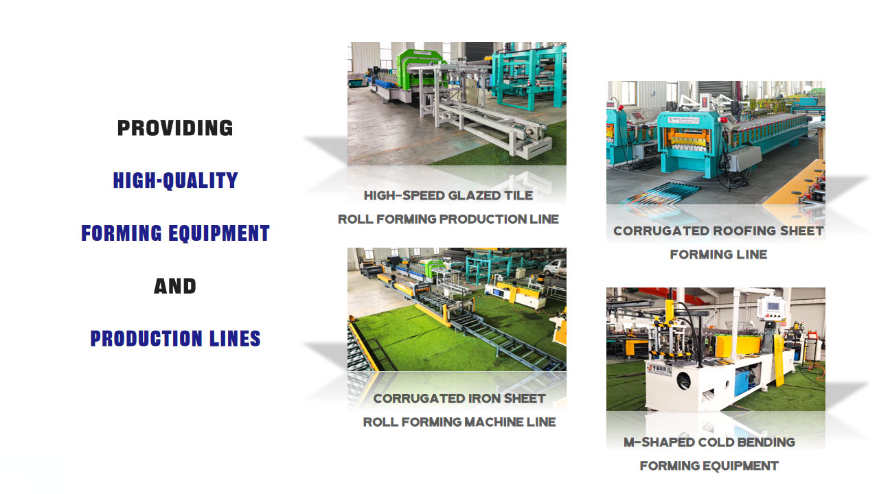 We are committed to providing high-quality forming equipment and production lines, including roof panel roll forming machines, high-altitude angle steel roll forming machines, aerial work platforms, floor deck roll forming machine, high-speed glazed tile roll forming machines, C/Z-type purlin roll forming machines, shearing machines, bending machines, etc. We can also provide customized machinery and complete production line solutions according to specific customer needs.