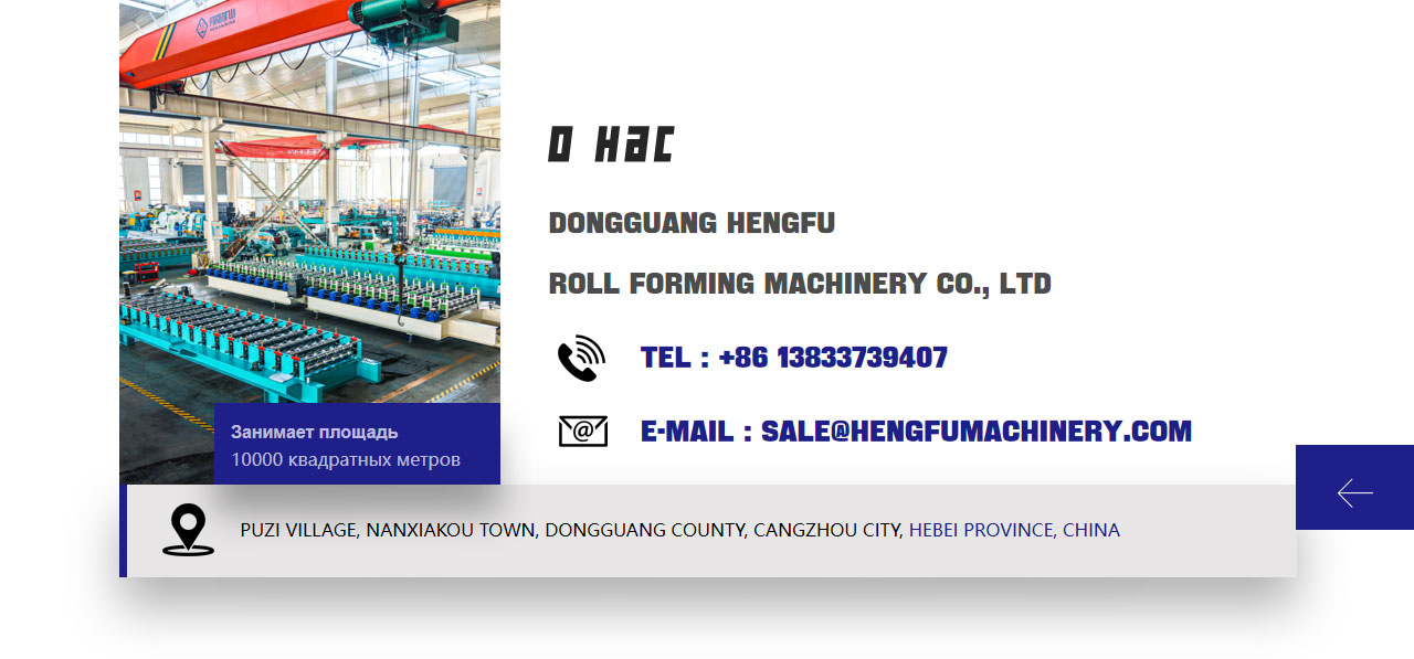 Компания Dongguang Hengfu Roll Forming Machinery Co., Ltd., расположенная в городе Цанчжоу провинции Хэбэй, занимает площадь 10 000 квадратных метров. Мы специализируемся на проектировании и производстве высокоскоростных линий холодного профилирования и сопутствующих автоматизированных производственных линий. Наша компания обладает многолетним опытом в разработке и изготовлении оборудования для профилирования. Наше основное конкурентное преимущество заключается в запатентованной технологии линейных направляющих, интегрированной в наше оборудование. Эта технология обеспечивает сверхстабильную работу, высокую точность формовки и повышенную производительность, что делает наши производственные линии высокоэффективными и надежными.